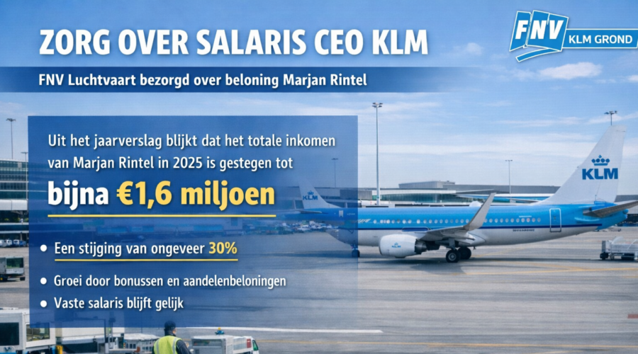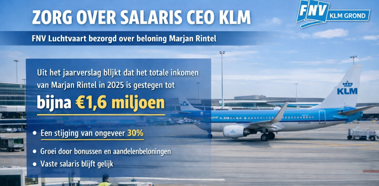 Nieuwsbericht – 07 april 2026 FNV Luchtvaart maakt zich zorgen over de recente berichtgeving over de beloning van de CEO Marjan Rintel. Uit het jaarverslag blijkt dat …